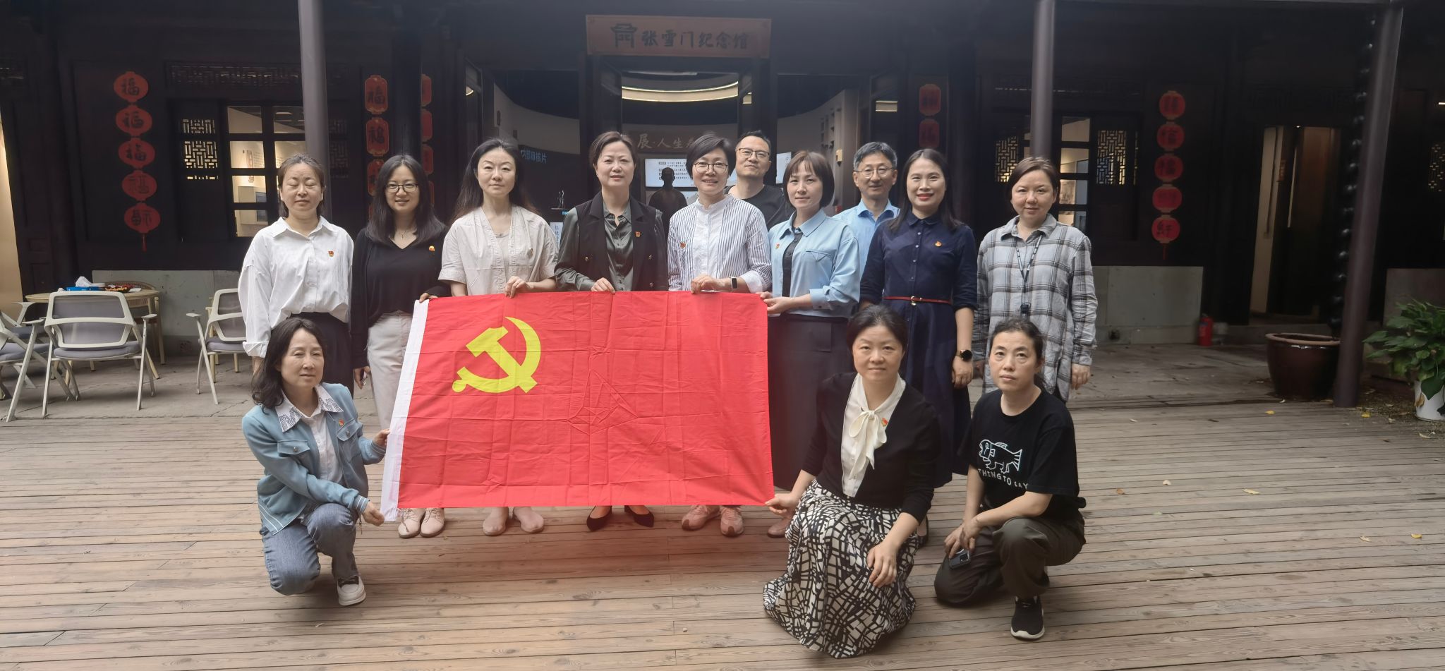 张雪门教育思想研究院坐落在宁波历史悠久的街区莲桥第,这里曾是张雪门的故居所在,白墙黑瓦、青砖石板留存着历史,也见证着当下。学前教育系教师党支部成员们参观了纪念馆。纪念馆借助AI技术实现智能互动,让人沉浸式了解张雪门的一生。