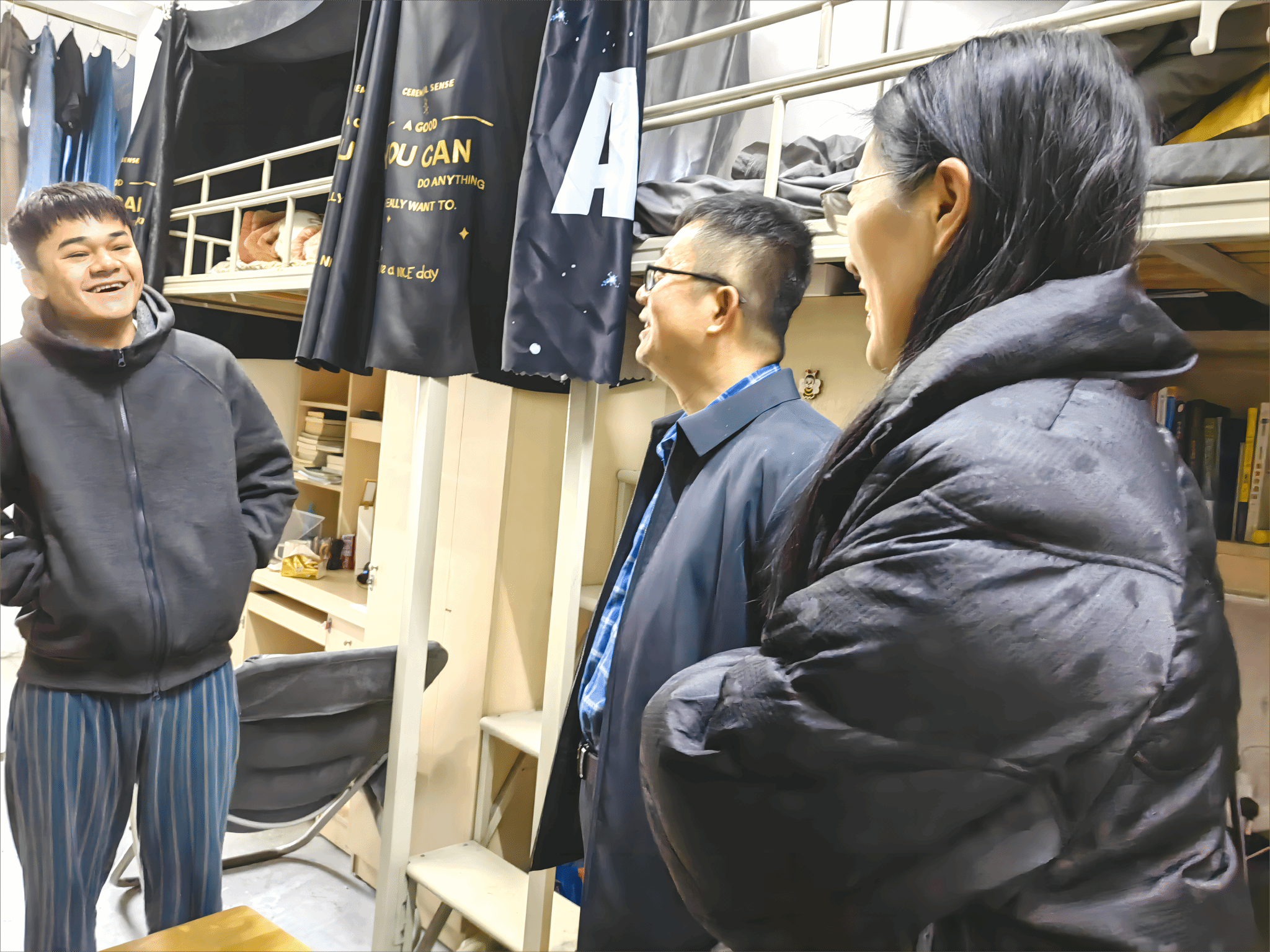 “春节期间留在学校,好好和同学们聚一聚,一起过年……”学生宿舍走廊尽头传来暖人心的话语声。