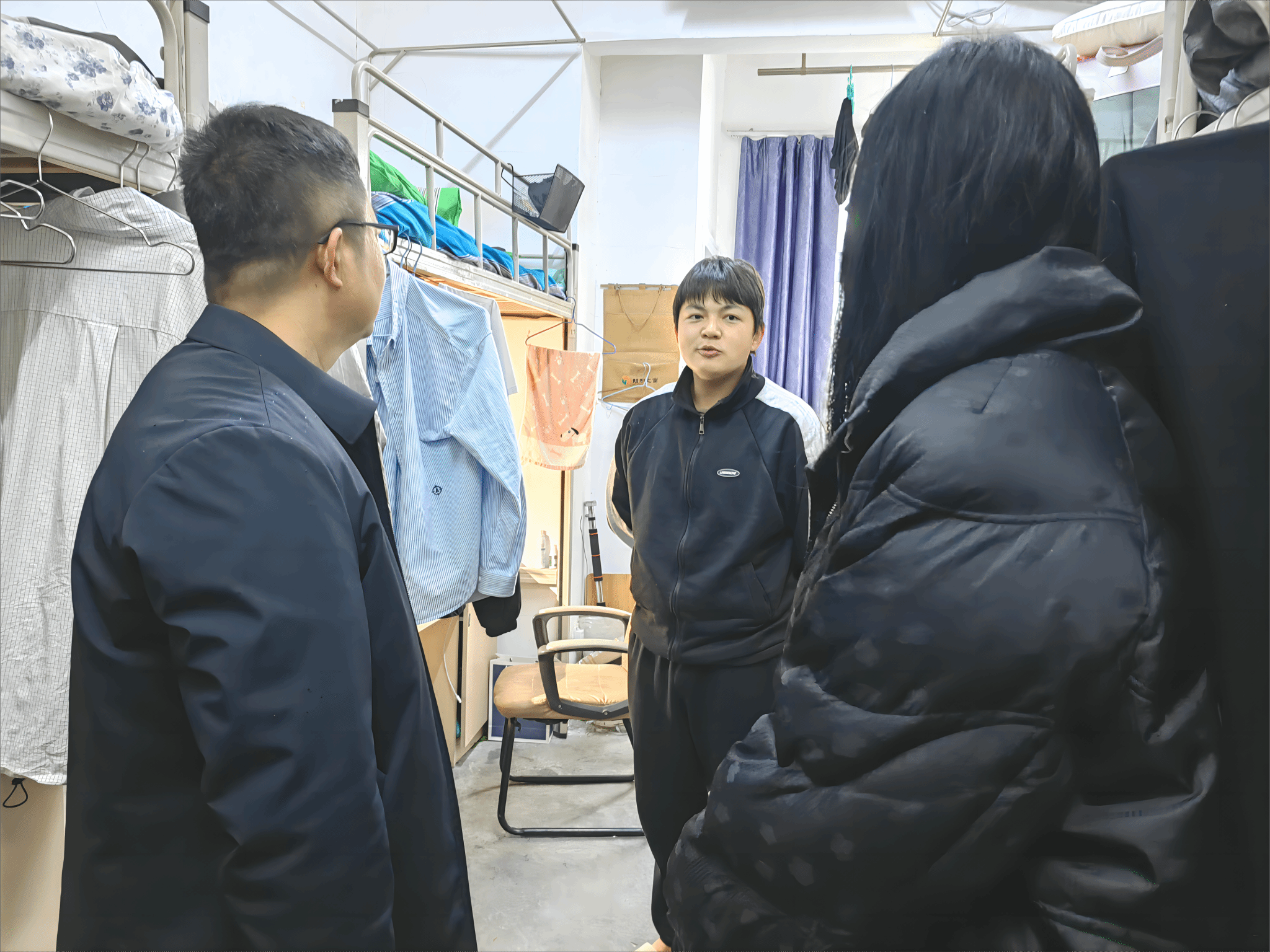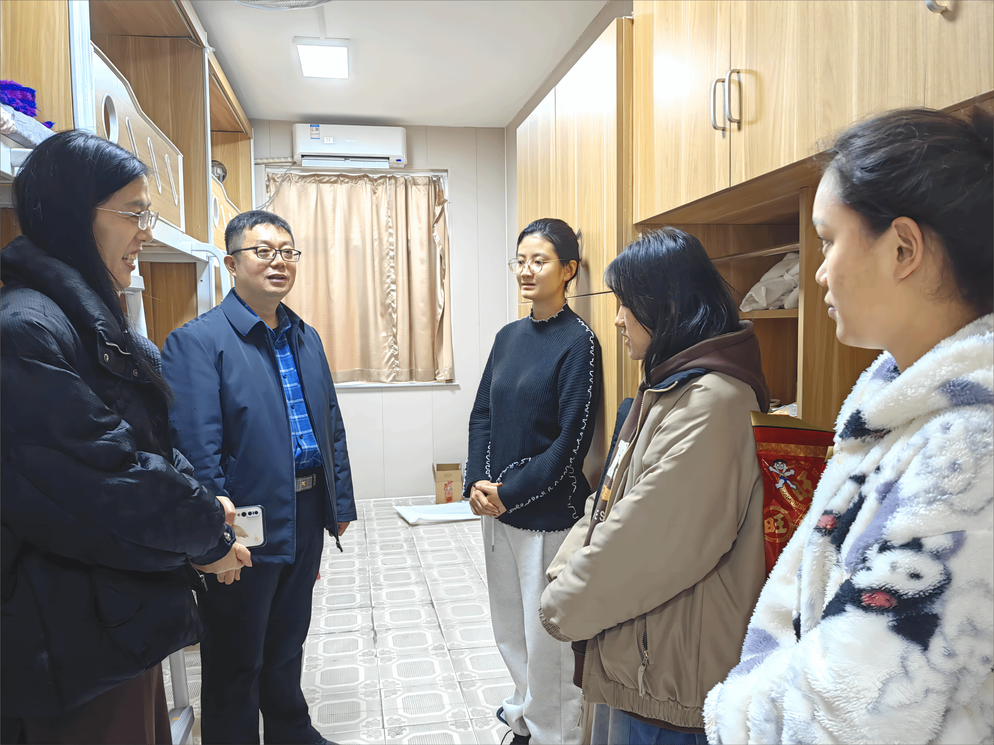 在走访慰问过程中,张书记一行详细地了解了同学们春节留校的原因和假期安排。来自西藏和新疆的毕业班同学们表示,如今面临着就业、考公、考研等重要抉择,留校是为了更好地开展学习、准备各类考试。张书记和龚书记给同学们加油打气的同时,鼓励留校同学之间多交流沟通,多组织一起过年聚餐和出游的活动,并嘱咐同学们要记得给亲人打电话,让家人们放心。