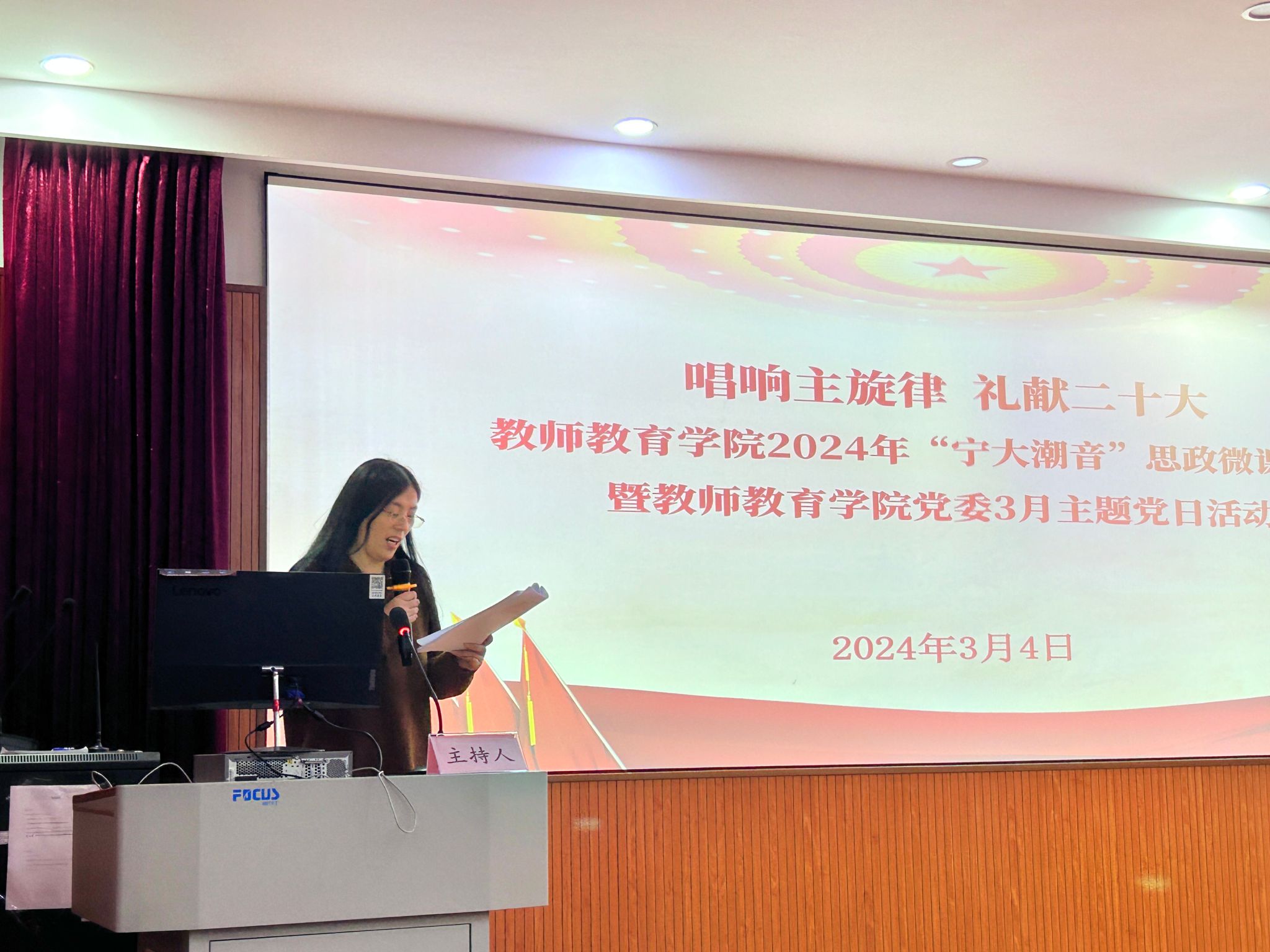 此外,有3位同学主讲了发展成就类党课。林好聚焦日常生活中的数字化改革,提出数字中国建设正在为中国式现代化注入强大动力;肖欣茹聚焦“扬帆数字新蓝海,赋予时代新力量”,举例说明了浙江数字改革的成果以及其日益强大的科技实力;陆燕则带领大家重温了党的教育史,坚信具有中国特色的发展教育之路是实现中华民族伟大复兴的重要基石。
