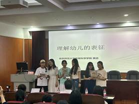之后,黄教授谈到如何理解儿童的表征。她提到表征的发生学研究的意义即动摇了逻各斯中心的知识观的同时也挑战了个人主义的、离身的知识生产方式。在谈及儿童的表征能力方面,黄教授指出儿童很早就表现出表征的能力,这种能力是在社会互动与依恋中形成的。这种表征能力也是多样化的,可以从认知维度和社会维度两个层次划分。儿童表征能力的认知维度包括动作表征、形象表征和符号表征,其中可以看到孩子的解决问题的策略、学习风格、生活经验、生活经验等。儿童表征能力的社会维度即表征具有沟通的本质;表征在沟通中形成;表征为表达而存在。