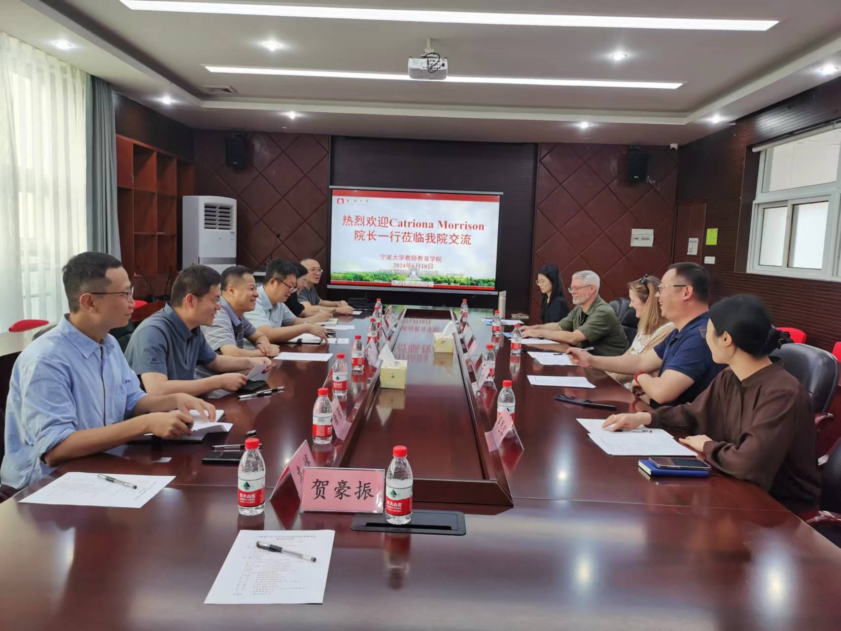 宁波诺丁汉大学人文社科学院院长Catriona Morrison(莫鸢)、党委书记戴一淼、教学副院长Derek Irwin、行政主管吴思容、学生事务主管沈舒雁参加会议。