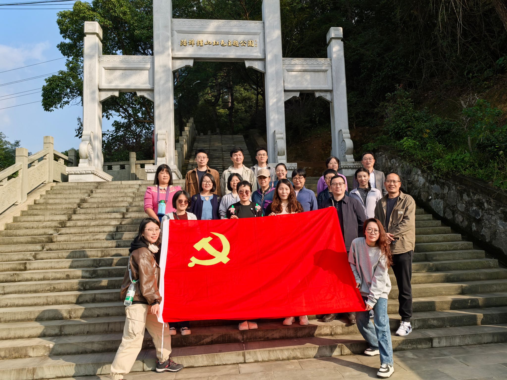 党委小学教育系教师党支部与行政教辅教工党支部共同前往浙东革命老区陆埠镇钟山红色主题公园,开展了“追寻红色记忆,厚植爱国情怀”的主题党日活动。