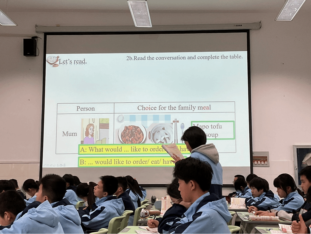 活动分为课堂观摩、说课分享、专家点评三个环节。首先,潘天寿中学陈君捷、陈静燕两位教师分别呈现了七年级下册Unit4的英语示范课。陈君捷老师的“Eat Well”一课,以健康饮食为主线,通过情境模拟、小组互动等多样化教学手段,引导学生思考饮食选择与健康的关系,课堂氛围活跃。陈静燕老师的“What do you like to eat?”一课,注重真实语境的创设,通过连贯的情境设计串联课堂,有效培养学生语言运用能力。