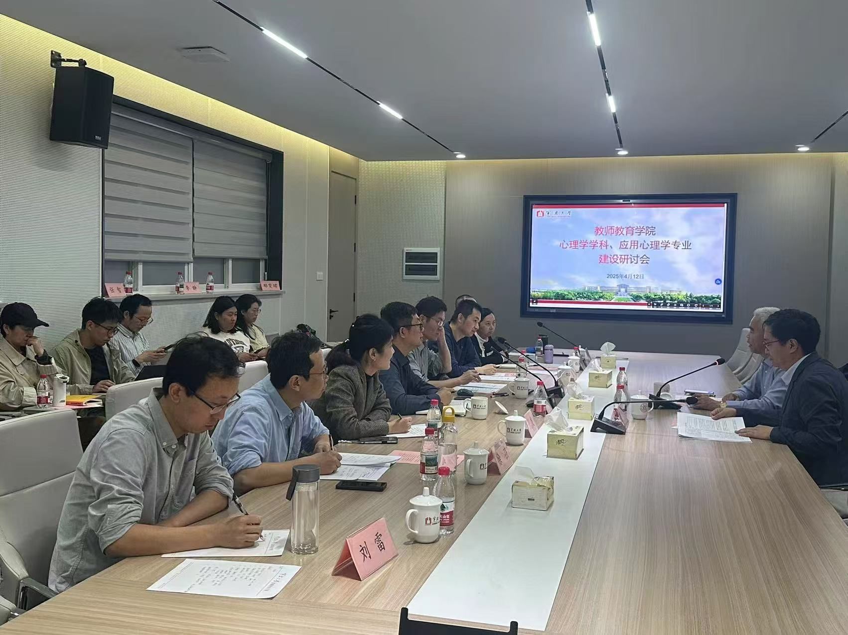 2025年4月12日上午,教师教育学院在教育楼413举办了心理学学科和应用心理学专业建设研讨会。会议邀请浙江师范大学原副校长李伟健教授和中山大学心理学系主任佐斌教授莅临指导。学院党委书记张林教授以及全体心理学科(系)教师20余人参加,会议由副院长尹军教授主持。