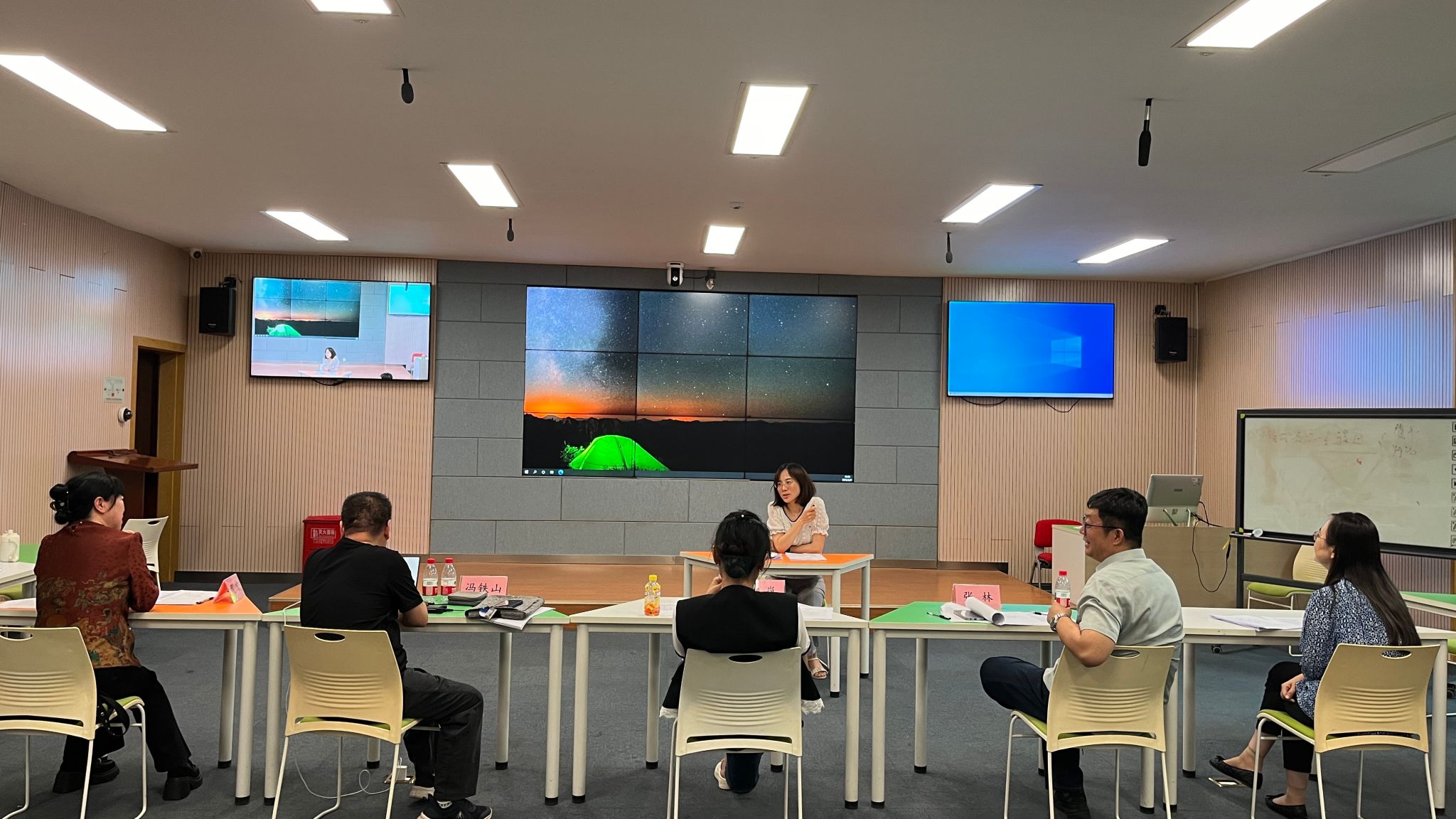 在教育楼208教室开展教学技能竞赛磨课活动。冯铁山、张林、焦岚和邢方四位专家应邀进行指导。