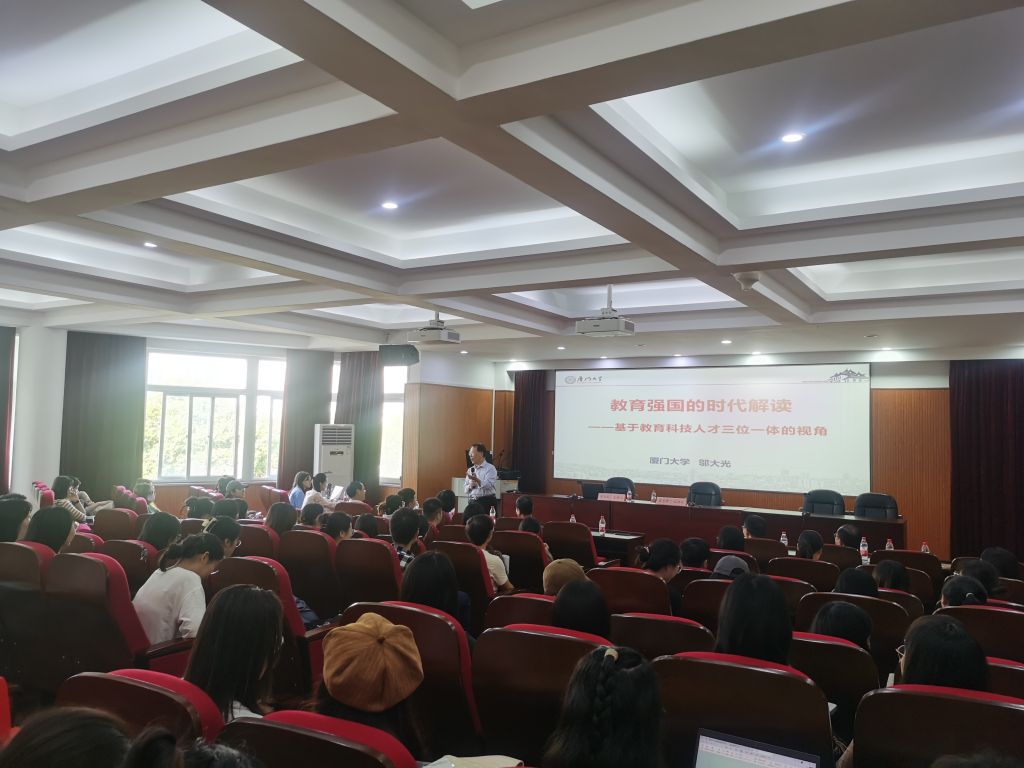 举办名家讲坛第366讲,邀请厦门大学邬大光教授作主题为“教育强国的时代解读——基于教育人才科技三位一体的视角”的专题报告,院长张宝歌教授主持讲座并代表学院向邬教授的到来表示热烈欢迎,天美传媒