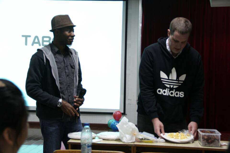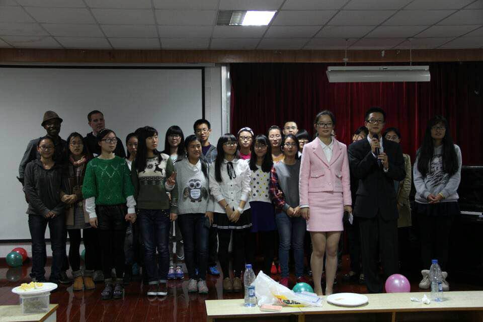 晚会还特别设置了与观众游戏互动环节,同学们积极参与,外教也热情加入,充分体现了我系师生的青春风采和团结精神。最后,晚会在一首温馨暖人的《Hey Jude》歌曲中结束。所有参加此次演出的成员及主持人同时登台,为本次晚会画上了完美的句点。