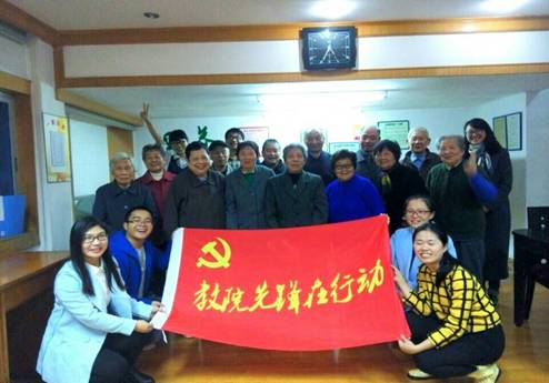 2013级研究生第三党支部(心理学系)中的正式党员、预备党员、入党积极分子和优秀团员们在学校安中大楼前集合,顶着风雨前往镇海区总浦桥日间护理中心,开展以“冬季暖心”为主题的党日活动。
