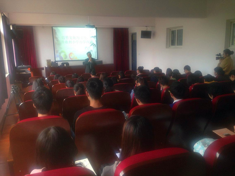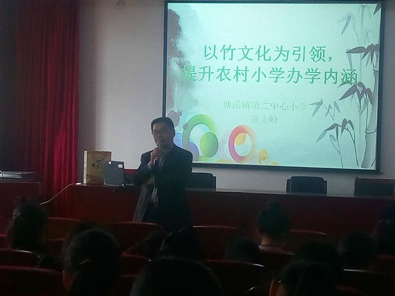 讲座以“文化为引领,提升农村小学办学内涵”为导入,具体阐述了校园竹文化的现实背景及其蕴含的教育价值,以及校园竹文化的具体内容。听完讲座,同学们纷纷向童老师提问,气氛融洽。