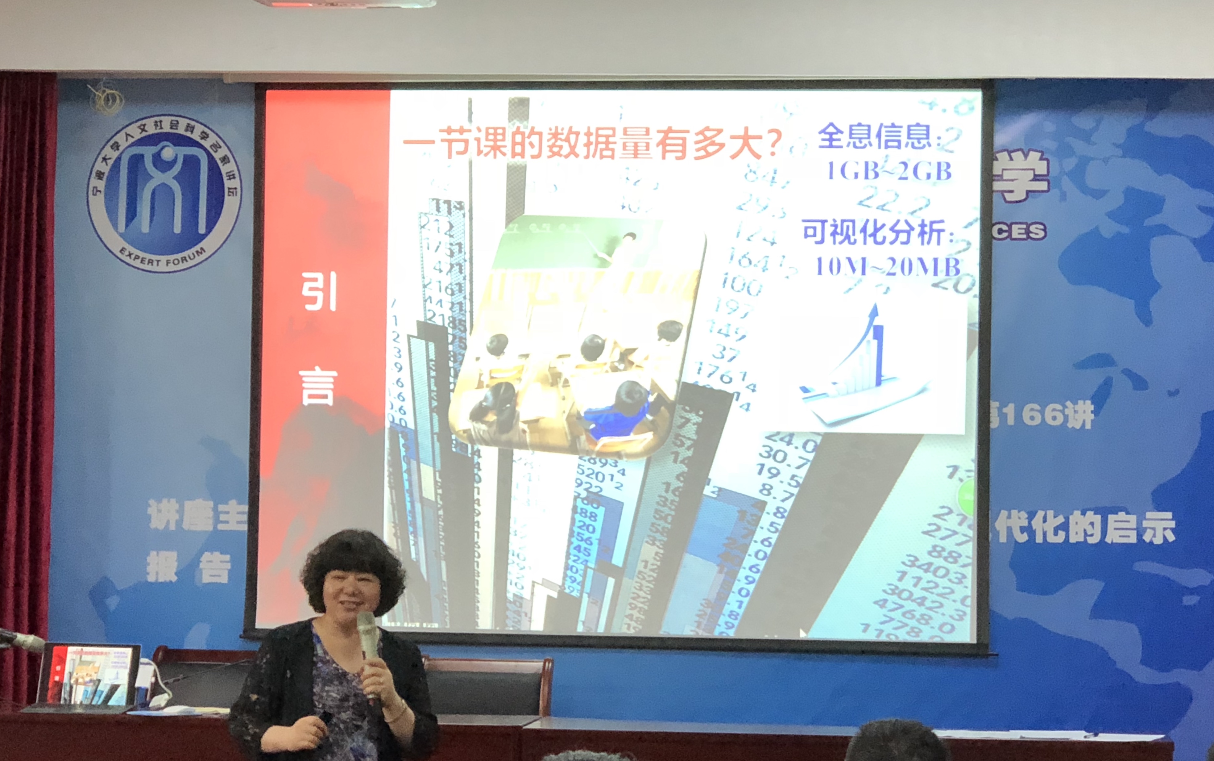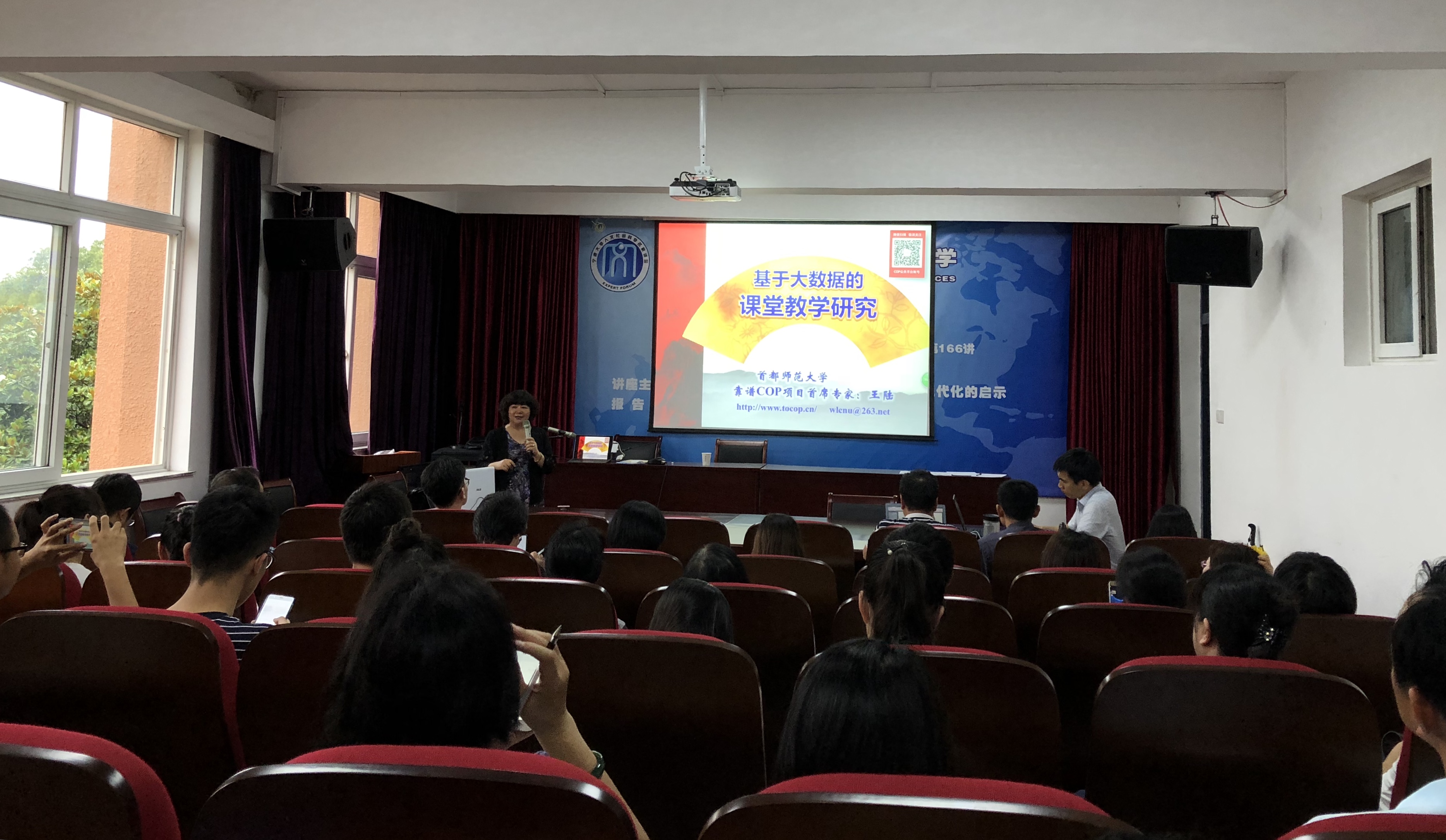 本次主题活动中,王陆教授主要从量化分析的角度通过理论与实际相结合的方式向与会人介绍了大数据下的课堂教学。首先,王陆教授向大家理清了什么是大数据,大数据的4V特点是什么。通过问题互动的形式,介绍了大数据下的课堂与传统教研课堂之间数据量的巨大差异。同时,王陆教授通过Good & Brophy对课堂的定义,得出课堂教学研究的定义,让与会者对课堂教学研究四要素以及课堂研究的三部曲都有了深刻的理解。为此,王陆教授重点向大家介绍了课堂研究的三部曲:课堂分析、课堂写真和课堂观察。对于课堂观察,王陆教授借助北京市的两所学校中两位老师的教学视频,展示在基础教育阶段大数据对于跨学科、跨学段的教学分析,同时介绍了大数据对教室的提问类型,教师的理答方式,课堂中的师生对话深度以及课堂中问题结构等做出了具体详实的分析。对于课堂写真,王陆教授借助大数据分析了男教师与女教师之间、文科与理科教师之间课堂教学现象的差异性,高质量教师与低质量教师之间的差异性,通过两两之间的比较提出目前基础教育阶段教师教学中存在的问题及其有效的解决策略。对于课堂分析,王陆教授向大家介绍了从数据到信息到知识最后到智慧的转变,并借助大数据对课堂教学行为与实践性知识进行了分析。最后,王陆教授引用顾明远“技术并没有改变教育过程的实质,但技术改变了整个教育过程的模式,改变了教育过程的组织序列,改变了分析和处理教育教学问题的思路。”结束了她的汇报。