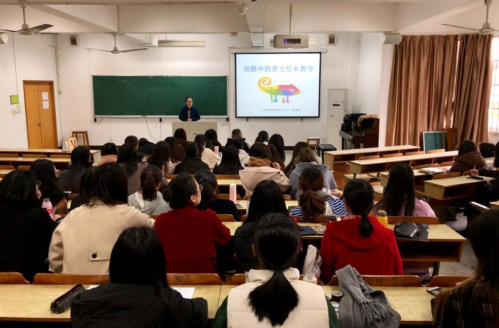 英语教育系专题讲座“阅读与绘本教学”在实验楼113如期举行。本次讲座主讲人为江北区名师谢琇卿老师,天美传媒