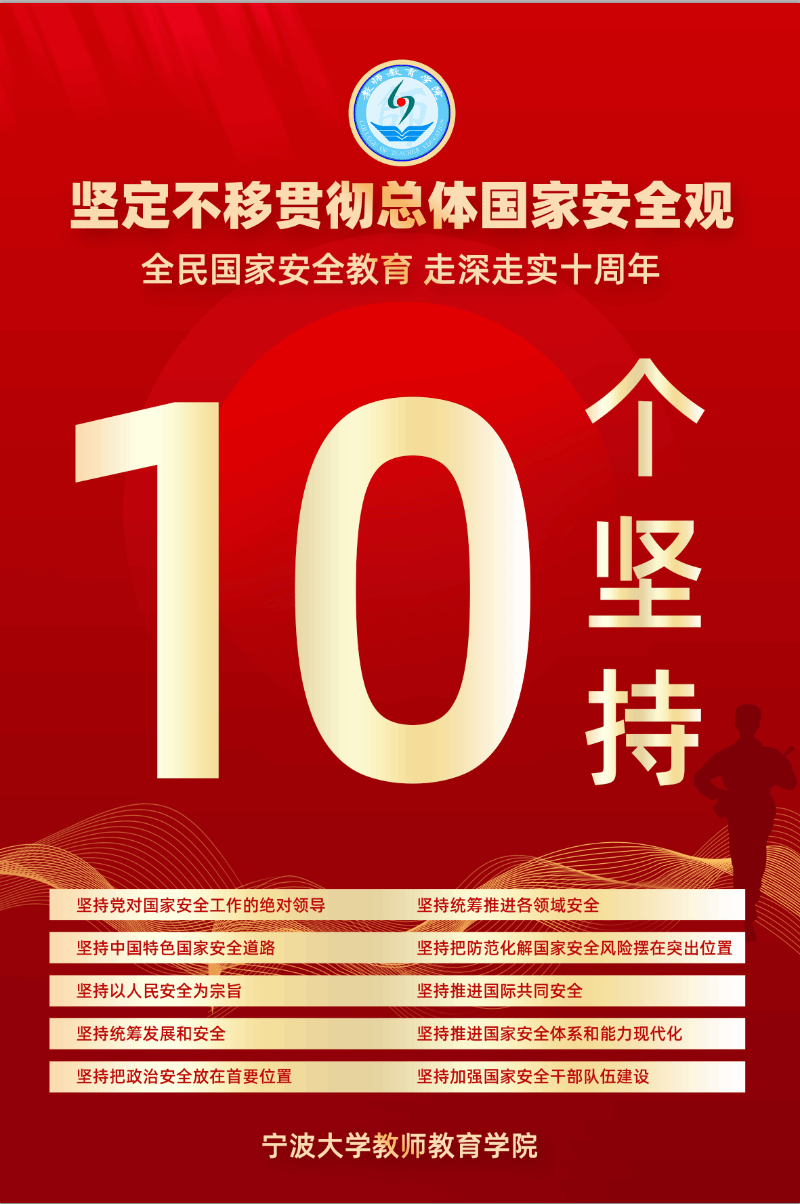 1.国家安全教育海报:开展全民国家安全教育,深入贯彻总体国家安全观,开展全民国家安全教育已走到第十周年。通过海报展示,我们将介绍国家安全的十项坚持,帮助大家更好地理解并积极维护国家安全。