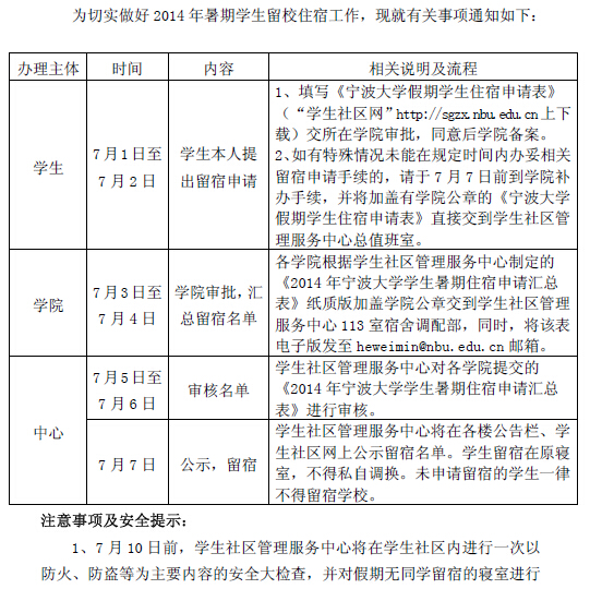 【寝室管理】关于做好2014年学生暑假留校住宿工作的通知