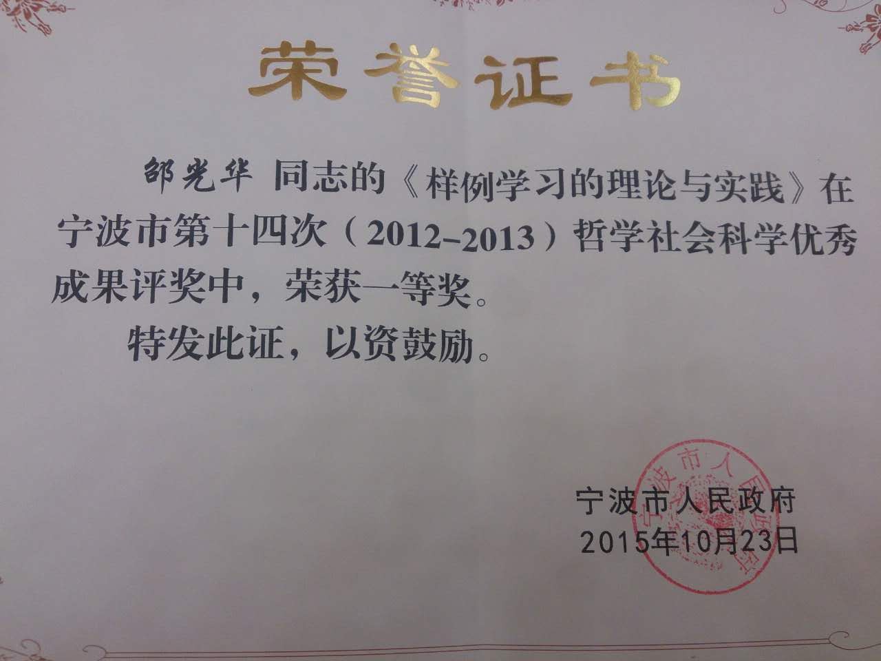 大会上,对宁波市第十四次哲学社会科学优秀成果奖进行了颁奖,天美传媒 邵光华副院长《样例学习的理论与实践》喜获宁波市第十四次哲学社会科学优秀成果奖一等奖。