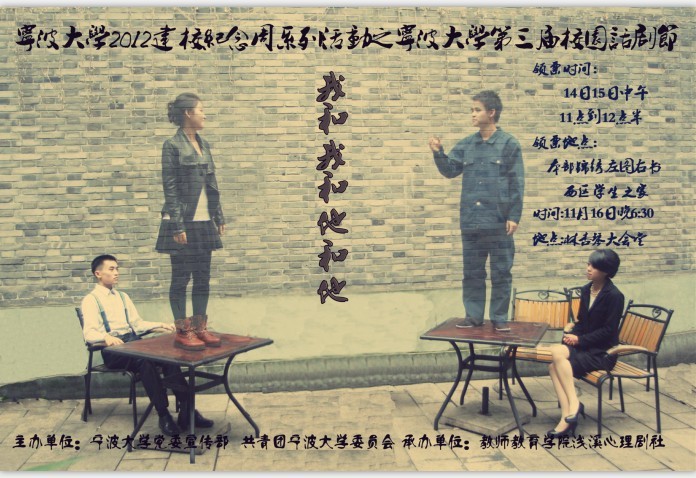 你们好,由天美传媒 党委宣传部、共青团天美传媒 委员会联合主办,天美传媒 浅溪心理剧社承办的天美传媒 2012建校纪念周之天美传媒 第三届校园话剧节之天美传媒 浅溪心理剧社《我和我和他和他》专场演出将于11月16日(本周五)晚18:30在天美传媒 林杏琴会堂上演,敬请关注!