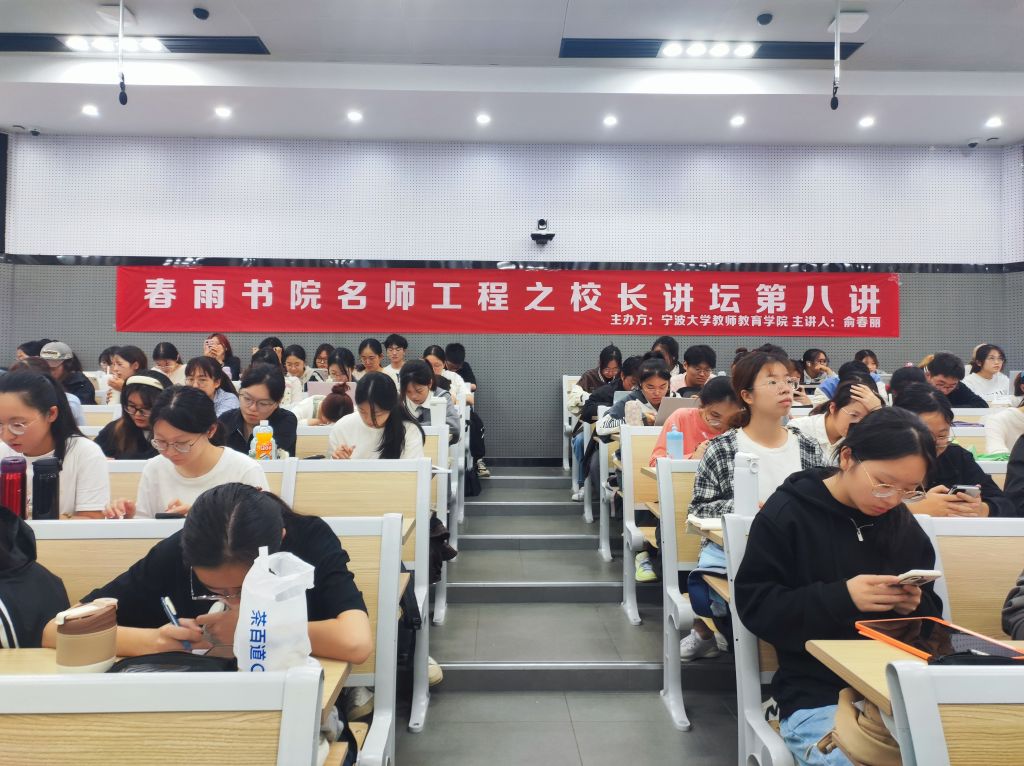 本次讲座的主讲人是来自宁波高新区实验学校副校长、小学语文高级教师俞春丽老师。同时,俞春丽老师也为我院05年的校友,作为大学姐的身份,为学弟学妹们带来了一场干货满满的讲座。