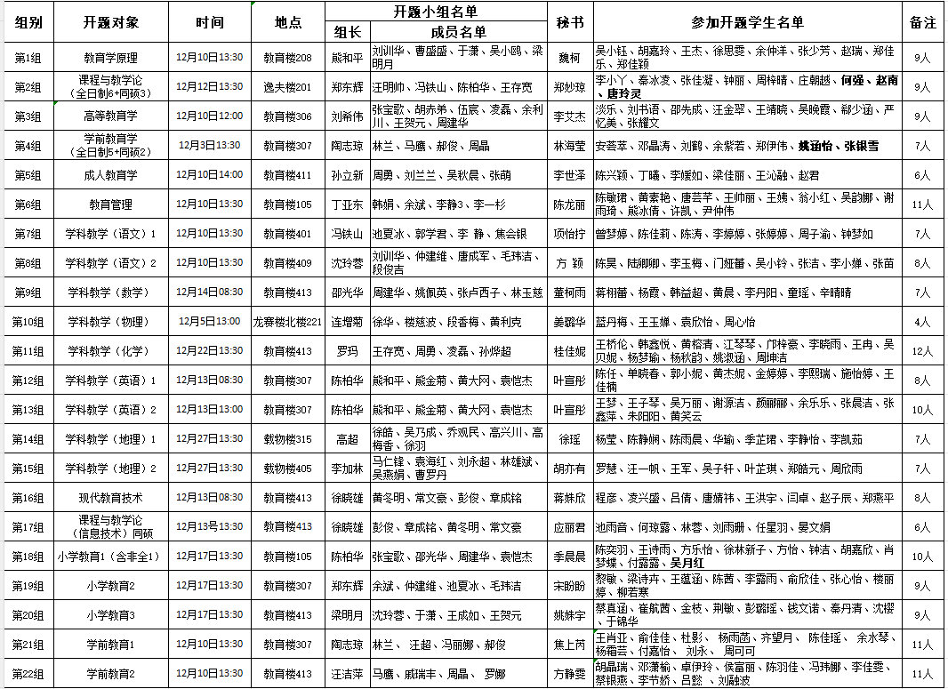 教师教育学院2025年度硕士学位论文开题考核安排表(部分专业)