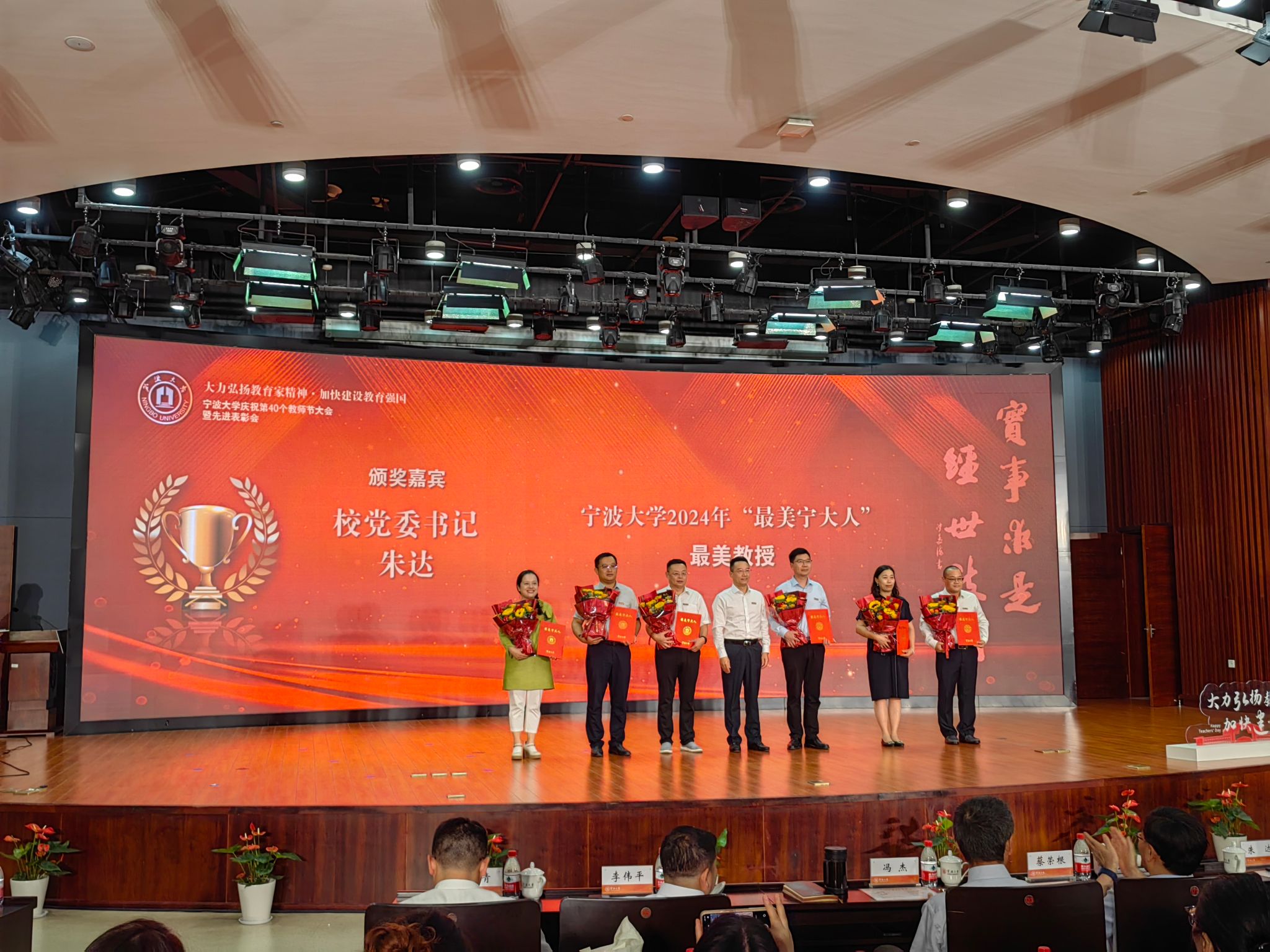 获“最美教授”称号的刘希伟老师颁奖(左二)