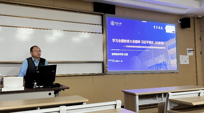 11月18日,教师教育学院学术副院长伍宸教授作为教育学原理与教育技术研究生党支部的“八进九联系”指导教师为支部内党员同志及入党积极分子们上了一堂生动且受益匪浅的党课。