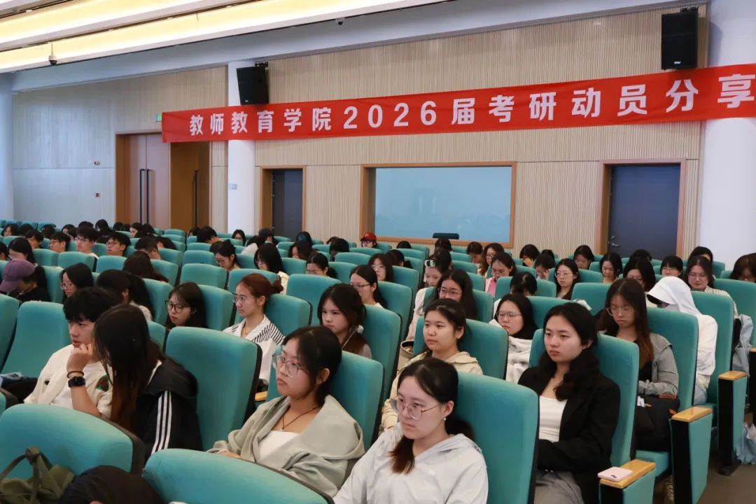 首先,心理学系教师党支部组织应用心理学本科生参加了学院的考研动员大会。教师教育学院院长张宝歌以“为何考研”为引,指出学历提升是应对就业挑战、响应国家对高层次人才需求的重要途径。学院副院长尹军作“全球化视野下的深造选择”主题分享,主要涉及国际化深造途径,包含短期暑期游学、出国进修、申请国(境)外硕士等事项。学院党委副书记龚小虹介绍了关于考研专项工作的护航政策。学院学工办陈丽娜老师讲解当前考研政策,详细介绍“研究生推免”“研究生支教团”等升学途径。心理学系主任兼心理学系教师党支部书记李宇老师从坚定信念、提升信心、共筑助力、赋能行动四个方面寄语考研学子,并用习近平总书记提出的“青春因磨砺而出彩,人生因奋斗而升华”与全体学子共勉,引导学生将个人发展与党和国家心理健康体系建设需求同频共振。