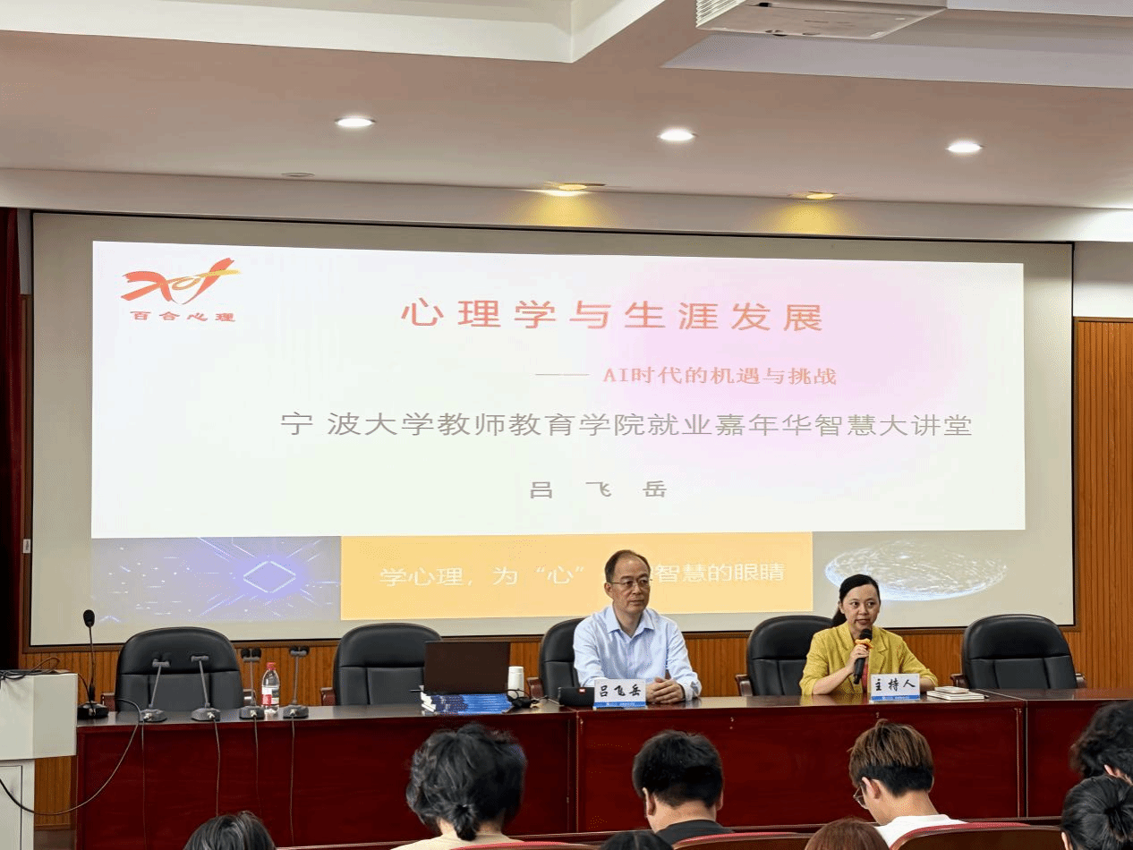5月21日下午,宁波大学教师教育学院智慧大讲堂第131讲在学院211教室举行。本次讲座特邀百合心理机构创始人吕飞岳老师,围绕"AI时代的机遇与挑战"主题,为心理学专业学生带来了一场精彩的专业学习与职业发展分享会。
