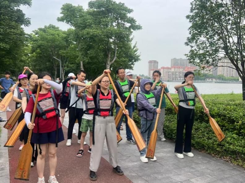 此次活动旨在以龙舟竞渡这一传统体育项目为载体,将凝心聚力的精神内核融入党建实践,在挥桨逐浪中锤炼党员意志、深化团队融合。龙舟运动所蕴含的“齐心协力、奋勇向前”精神正是教育工作者立德树人所必备的品格。随着一声令下,同志们穿上救生衣,在专业教练指导下认真聆听划桨节奏、团队协作要领。从初登龙舟时的摇晃生疏,到训练中彼此反复磨合、调整节奏,直至鼓点与动作最终完美契合,同志们用汗水浇灌默契,以协作诠释信念。