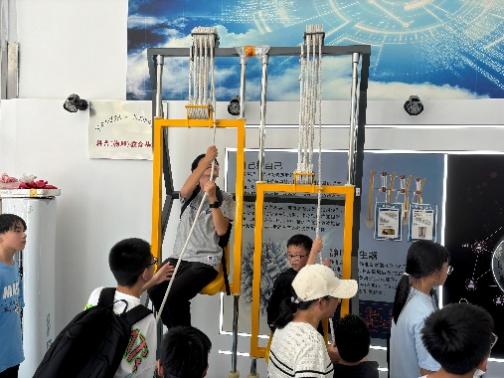 在物理与科学技术学院的物理科学探索中心展馆中,同学们对各类科普仪器展现出极高的热情,现场充满了好奇与探索的氛围,充分展现了同学们对物理科学的浓厚兴趣和主动求知的态度。