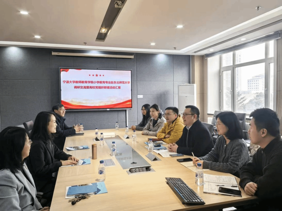 为进一步提升小学教育系“党建+业务”双融双促建设水平,学习教育领域的先进教学理念及人才培养经验,持续推动小学教育国家一流本科专业、课程结构体系和学位点高质量发展,2025年11月16日至11月17日,教师教育系系主任余利川副教授带队,携小学教育系主任袁恺杰副教授等一行6人,前往东北师范大学教育学部开展专题调研与学习交流。此次调研重点围绕小学教育专业建设的方向与规划设计、三级认证人才培养方案设计与实施、实践教学体系创新以及学生发展支持体系等主要方面与东北师范大学教育学部相关领导、教师进行座谈交流。参加交流的有东北师范大学教育学部副部长杨卫安教授、东北师范大学初等教育学院院长刘学智教授、东北师范大学教育学部副院长解书副教授、东北师范大学教育学部孙兴华副教授。