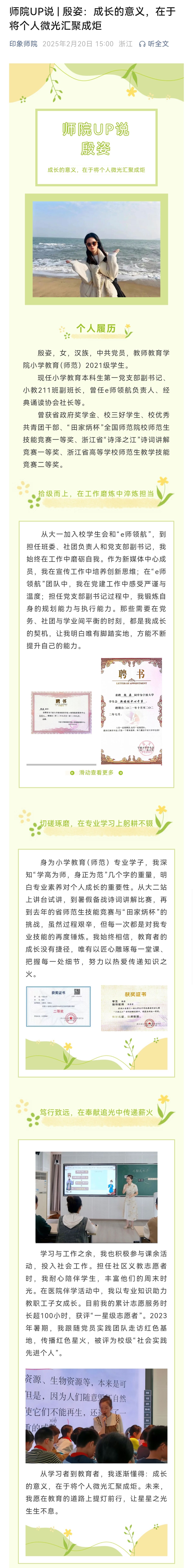 师院UP说 | 殷姿:成长的意义,在于将个人微光汇聚成炬