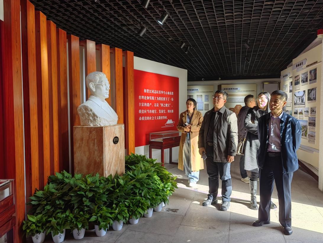 全体人员首站前往杨贤江故居,大家通过聆听讲解、参观实物史料,在沉浸式体验中深入学习杨贤江“为大众教育”的革命精神与教育理念;接着,一行人转至慈溪革命烈士纪念馆,在瞻仰过程中缅怀革命先烈事迹,感悟初心使命,为后续研讨凝聚起精神力量。