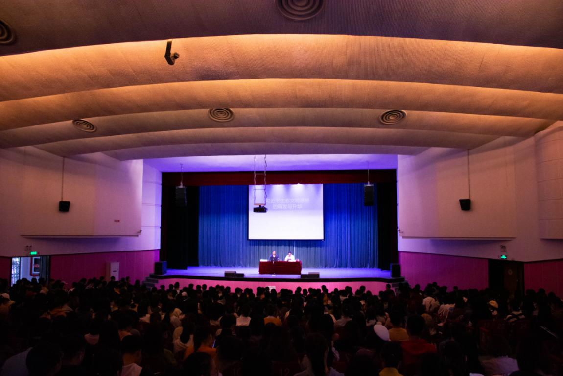 10月23日下午13:30,教师教育学院、土木与环境工程学院2016、2017级学生“形势与政策课”在林杏琴会堂顺利开讲。课程由宁波大学校长、党委副书记沈满洪教授主讲,土木与环境工程学院党委书记林奇凯主持。教师教育学院、土木与环境工程学院600余位师生一同听讲。