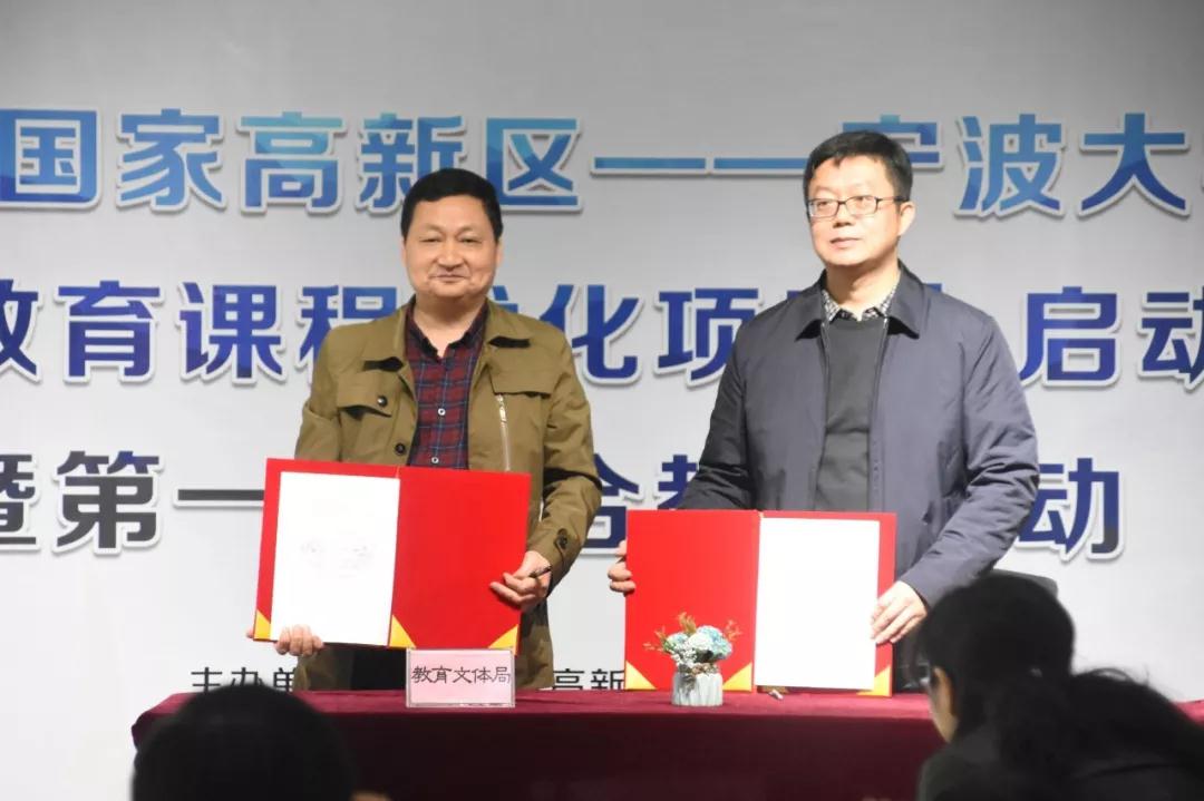 启动仪式上,张林教授与区教育文体局领导正式签署项目合作协议,此举也预示着高新区学前教育与宁大高校正式架起互通合作的桥梁。王康祥局长表示:随着高新区经济和社会的发展,人民群众对优质教育的需求越来越强烈。希望通过和宁波大学教师教育学院开展为期三年的“学前教育课程优化”合作项目,“嫁接”教育专家智慧,借力一流教育资源来使我区的学前教育走上跨越式发展快车道。张林教授表示:合作不仅有利于高新区学前教育的发展,也有利于高校理论研究应用于实践,促进高校办学质量的提升,实现双赢。
