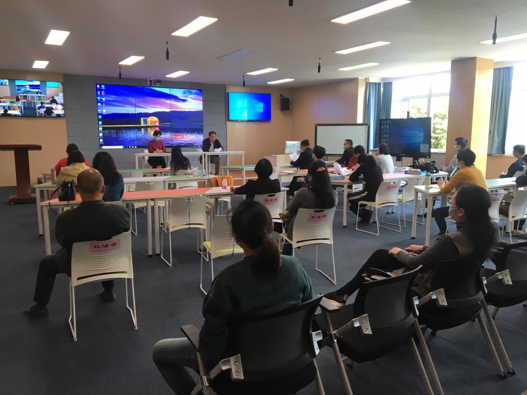 4月29日下午,教师教育学院召开疫情防控期间第一次全体教职工大会。会议以分会场视频转播的形式进行,学院精心进行了会前安排,一个主会场和两个分会场分别贴上名牌,座位绑线隔开。学院党委书记方莹芬主持会议。