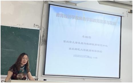 教师教育学院“雪门讲坛”第二十六次学术报告会于2021年5月28日下午在宁波大学西区实验楼213教室成功开展。牟映雪教授做了以“经济学视域的学前教育改革与发展”为主题的报告。本次活动的参加者有宁波大学学前教育专业全日制与非全日制的研究生和本科生以及(专职和兼职)导师、研究生创新实践基地、教研基地的教师参加。此外,陶志琼教授作为主持及点评人出席了本次报告会。