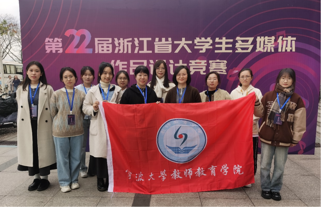 宁波大学此次比赛取得较好成绩,得到学校与教师教育学院大力支持,是各位指导老师与同学们共同努力的成果,同时感谢大学生多媒体竞赛基地各位老师的辛勤付出。