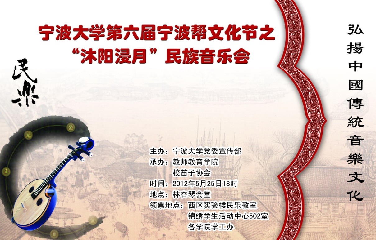 【校园文化】宁波大学第六届宁波帮文化节之“沐阳浸月”民族音乐会演出通知