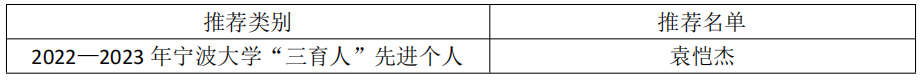根据校工会下发的《关于开展宁波大学“三育人”岗位建功活动的通知》精神,经申报材料报送和学院党委会会议研究,现将拟推荐名单公示如下: