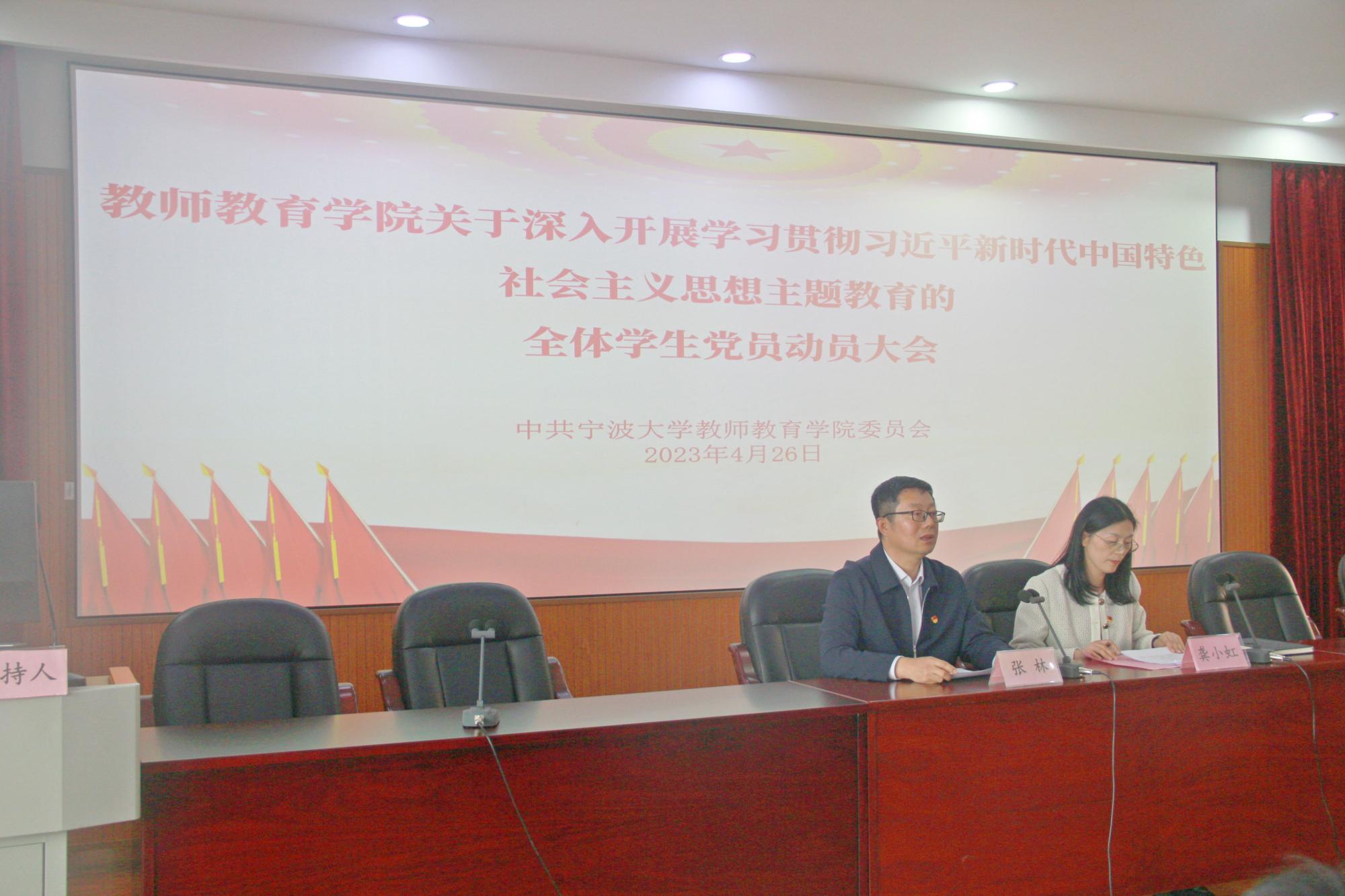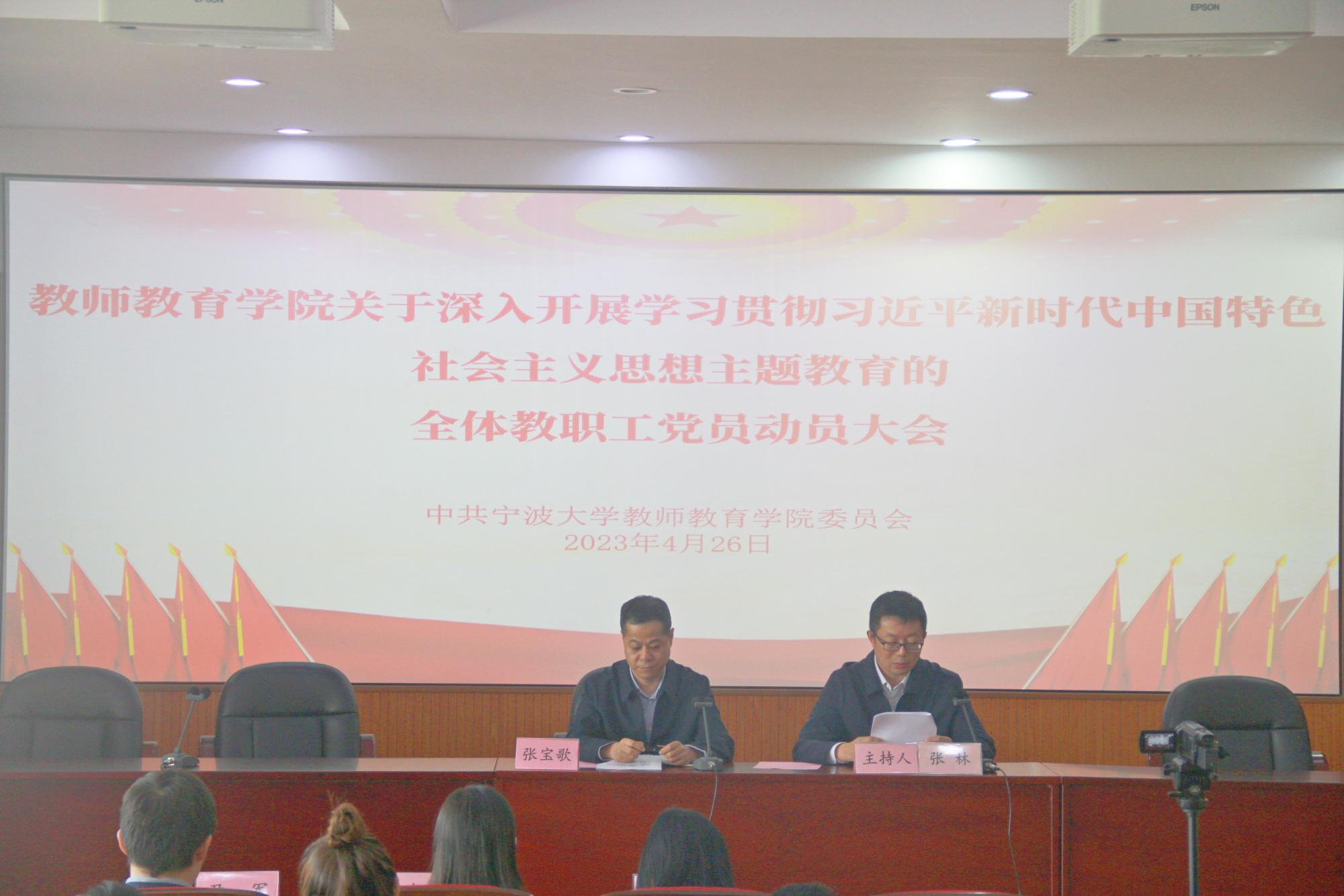 4月26日,教师教育学院召开关于深入开展学习贯彻习近平新时代中国特色社会主义思想主题教育全体师生党员动员大会,全面部署主题教育相关工作。学院党委书记张林、学院院长张宝歌及学院党政领导班子成员、学院全体师生党员参加了会议。