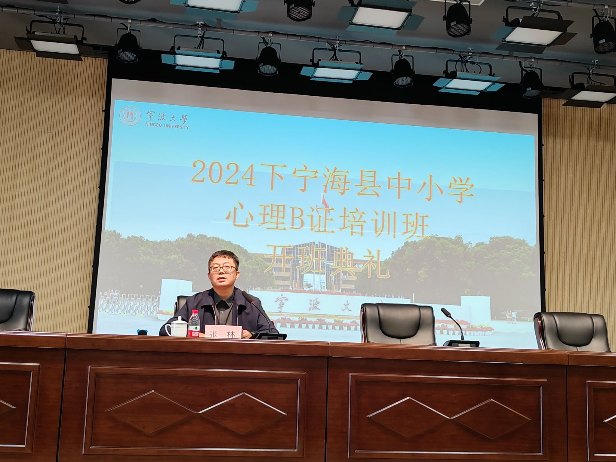 11月8日,由宁波大学教师教育学院承办的宁海县中小学教师心理B证培训1班和培训2班分别在宁海县星海小学报告厅和潘天寿小学(天明校区)报告厅隆重举行开班仪式。宁波大学教师教育学院党委书记张林、宁海县教育局副局长王建东出席开班仪式,共有360余名学员参训。会议由宁波大学教师教育学院培训部主任翁艳主持。