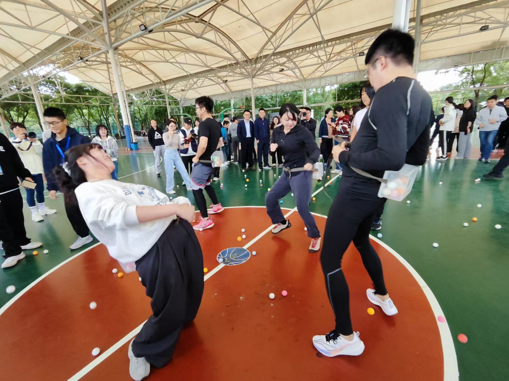教师教育学院分工会在本次运动会比赛中表现出色。团体项目方面,蛟龙出海获得第二名(汪超、解少娟、段俊吉、熊桂枝、黄晖、罗娜),8×50米迎面接力获得第三名(黄晖、段俊吉、唐成军、张倩倩、李一杉、吴菲菲、罗娜、朱怡),抖甩乒乓球获得第五名(黄晖、段俊吉、李松楠、俞露贝);个人项目中,女子沙包刘彩霞获得第六名,女子投篮刘彩霞、朱怡获得优秀奖,女子踢毽子王玉姣获得优秀奖,女子跳绳罗娜、熊桂枝获得优秀奖。男子沙包唐成军获得第二名,男子跳绳黄晖获得第五名,男子投篮黄晖、唐成军获得优秀奖,男子踢毽子汪超、黄晖获得优秀奖。解少娟获得2024年宁波大学教职工乒乓球单项赛女子单打第七名的好成绩。最终,教师教育学院分工会以团体总成绩第四名的佳绩,圆满结束了本次运动会的征程。汪超教练说,我们回到了昔日的辉煌。