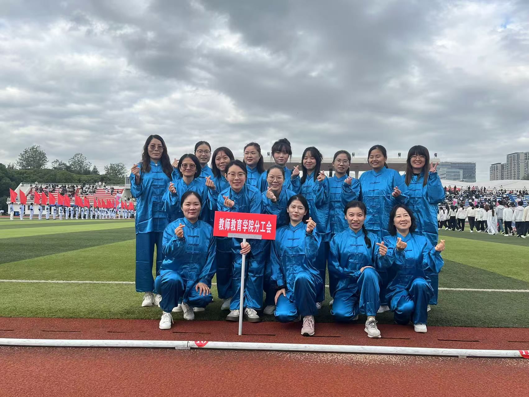 教师教育学院分工会由18名教职工组成的太极拳展演分队为校运会开幕式带来了英姿飒爽的太极拳表演,参演教工服装统一、动作整齐,配合默契,充分展现了师院教职工精神抖擞的精神风貌。由30多名教职工组成的趣味运动会参赛队分别在“蛟龙出海”、“抢种抢收”等集体项目中参赛,在运动赛场上,老师们暂时抛开了工作重负,焕发出青春活力。在“抢种抢收”项目中,展现了速度与耐心的和谐统一;在“蛟龙出海”项目,考验了彼此间的默契与团队协作,肩并肩,手挽手,他们齐声高呼着口号,步伐一致地向前推进;在8*50米接力跑中,学院短跑队的8名队员通过加油打气、挑战极限、奋力冲刺,取得了该项目我院的历史最好成绩。全体老师通过团队配合、相互鼓励,在赛场上形成了良好的拼搏氛围,赛出了友谊、赛出了风格。通过趣味运动会,进一步加深了学院教职工之间的感情,架设了学院不同基层组织间教工沟通的桥梁。